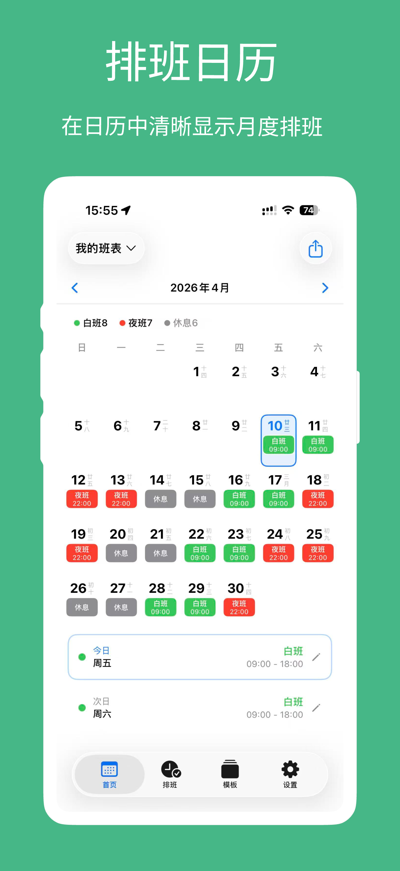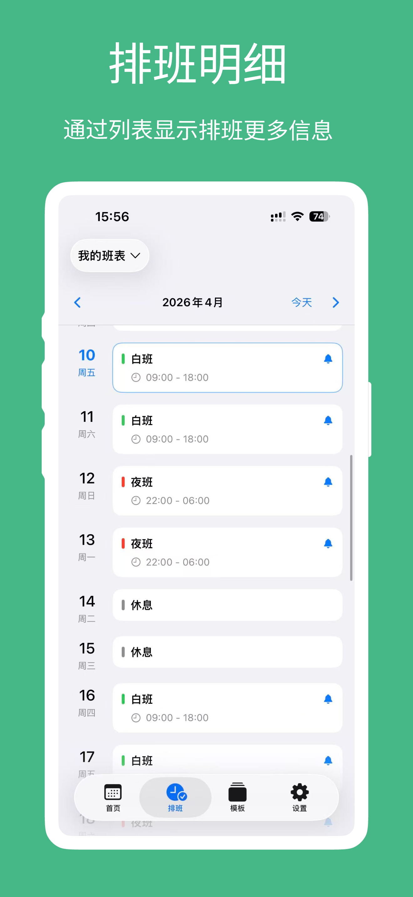 2、可为班次设置独立提醒,减少漏班与迟到风险